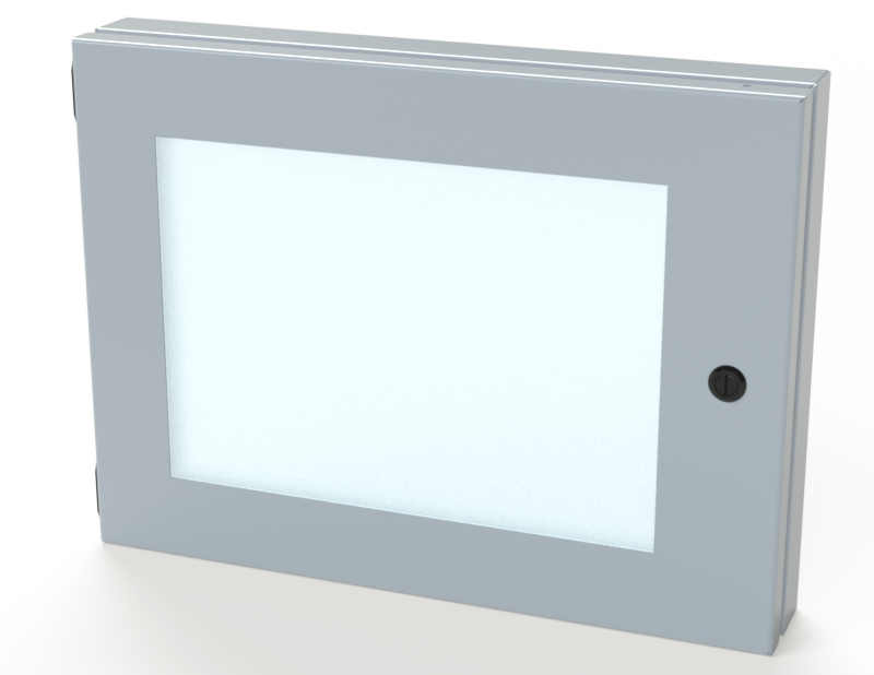 Designed to mount on the exterior of an enclosure to provide protection for controls with easy access. ELJ hinges. Black mini quarter turn latches. UV stable polycarbonate viewing window. Gasket and hardware included. For outdoor application a drip shield and drain vent is recommended.