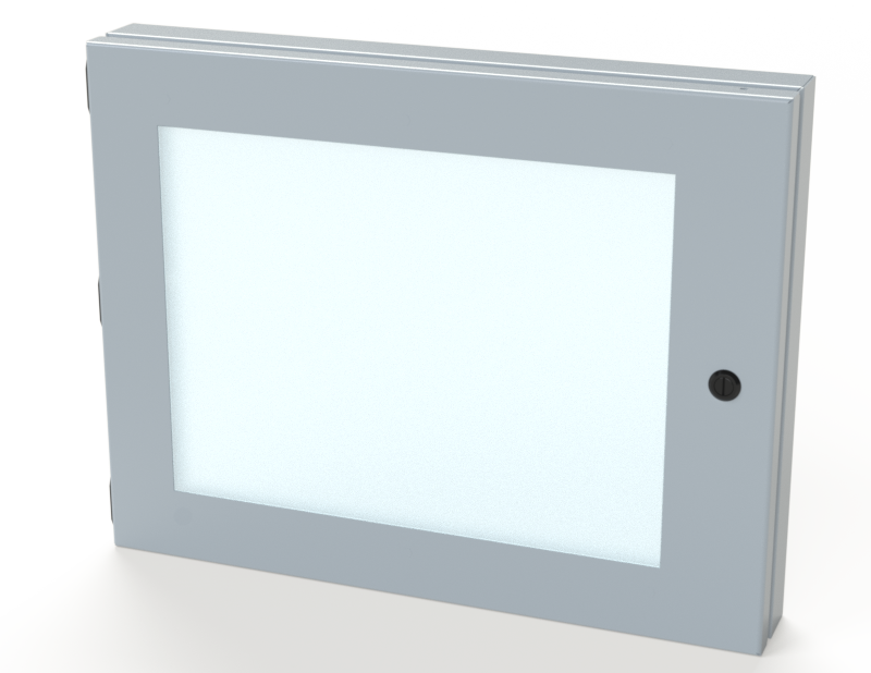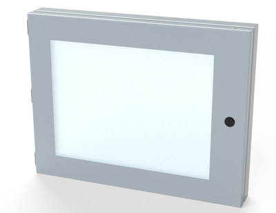 Designed to mount on the exterior of an enclosure to provide protection for controls with easy access. ELJ hinges. Black mini quarter turn latches. UV stable polycarbonate viewing window. Gasket and hardware included. For outdoor application a drip shield and drain vent is recommended.
