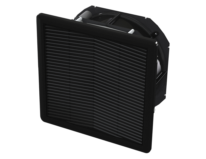 Easy to install snap fit design for use in enclosures that require cooling but have limited space in NEMA 1 and 12 applications. Housing and grille are made of black heat resistant (ABS-FR), self-extinguishing material. Fans are available in 115 or 230 volt AC, 60/50 Hertz (HZ) single phase or 24 volt DC.