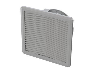 Easy to install snap fit design for use in enclosures that require cooling but have limited space in NEMA 1 and 12 applications. Housing and grille are made of light gray heat resistant (ABS-FR), self-extinguishing material. Fans are available in 115 volt AC, 60/50 Hertz (HZ) single phase or 24 volt DC.