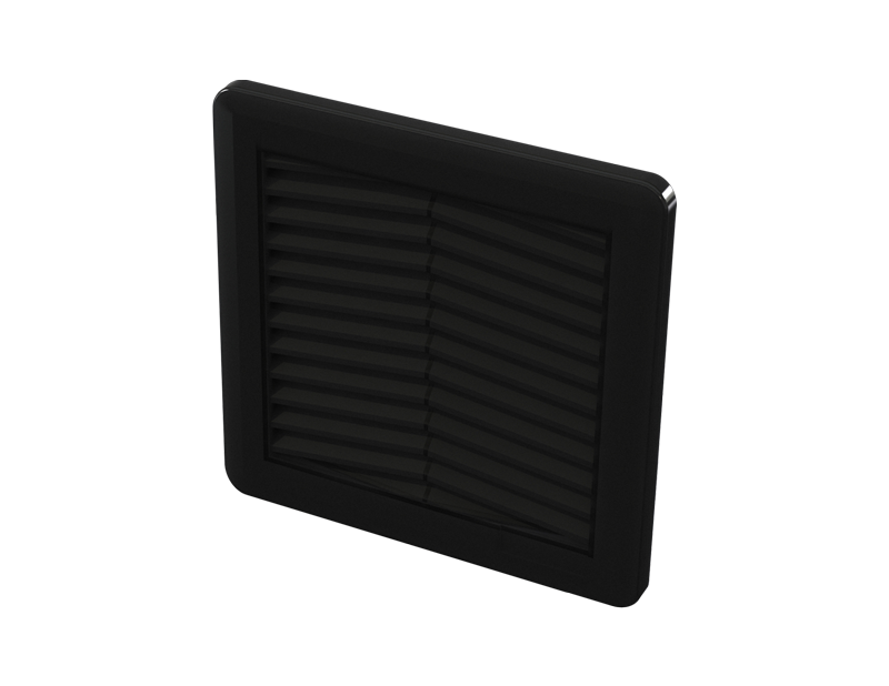 Easy to install snap fit design for use on air discharge side of fan package for NEMA 1 and 12 applications. Housing and grille are made of black heat resistant (ABS-FR), self-extinguishing material.