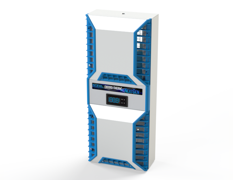 NextGen Enviro-Therm Air Conditioners are designed with an internal closed loop system to provide protection from dust, oil and water. For use in most industrial area or application where low ambient temperature is not a concern, both indoor and outdoor. Rugged, energy efficient and reliable cooling system.Installation may be Surface or Recessed Mounted