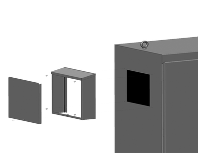Designed for use with Type 12 fan and filter kits to prevent rain, sleet, snow, dropping water or fluids from being drawn into the enclosure. Removable cover for easy access to fan and filter kits. Made of heavy gauge galvannealed steel. "SS" parts are made of Type 304 stainless steel.