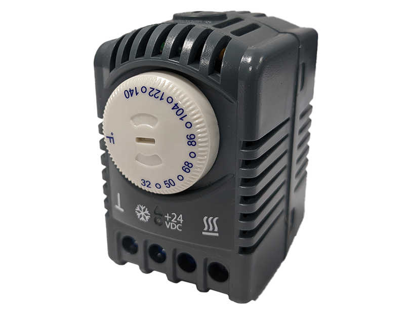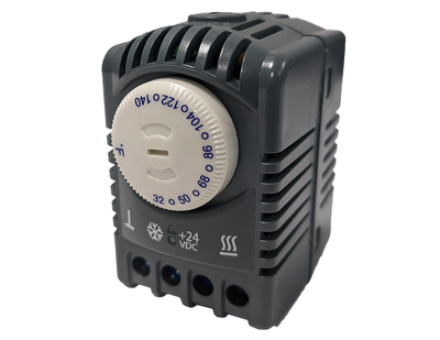 Designed to regulate air temperature in enclosures and operate with the Thermoelectric Coolers. This electronic thermostat has a set point range of 14° to 176° F and is easily installed on 35 mm mounting rail. 24V DC 16A.