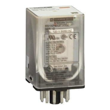 8501KPR13P14V20 | 8501K General Purpose Plug-in Relay, 11 pin plug-in, 3 Poles, DPDT, 120V AC | Square D by Schneider Electric