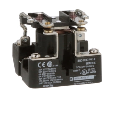 8501CO7V14 | Power Relay, Type C, 2 HP, 30A resistive at 300 VAC, DPST, 2 normally open contacts, 24 VAC coil | Square D