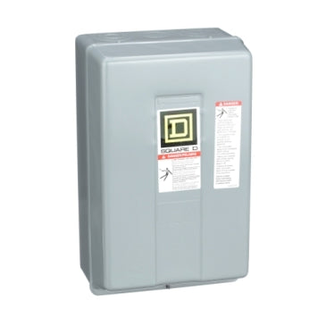 8903L multipole lighting contactors are for lighting control applications. 8903L lighting contactors are available in either mechanically held or electrically held versions. This is an electrically held device. Can switch up to 30 A fluorescent and 20 A tungsten lighting loads. The contacts are field convertible from NO to NC. This device 2 pole device has 2 NO contacts. Supplied with a 110/120 VAC 50/60 Hz interchangeable operating coil but other coils are available in a wide variety of common voltages up to 600VAC. Contactor is in a NEMA 1 painted sheet steel enclosure, but a variety of other enclosure types are available. Coil and contacts are easily replaced. Enclosure is 12.69 inches tall, 7.81 inches wide and 6.03 inches deep. 8903L lighting contactors are UL Listed and CSA Certified.Specifications
