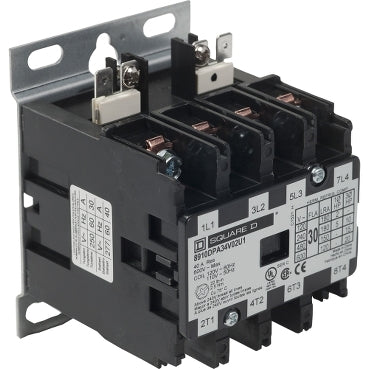 8910DPA34V02U1 | Contactor, Definite Purpose, 30A, 4 pole, 20 HP at 575 VAC, 3 phase, 110/120 VAC 50/60 Hz coil, open, UL Listed | Square D by Schneider Electric