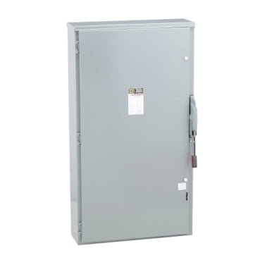 The Square D™ by Schneider Electric brand Heavy Duty Safety Switch is designed to be tough, reliable and provide exceptional performance in the most grueling conditions. F Series safety switches provide significantly higher levels of mechanical endurance than NEMA KS-1 or UL98 standards require. All heavy duty safety switches feature a quick-make, quick-break operating mechanism, a dual cover interlock and a color-coded indicator handle. This Single Throw Safety Switch has a rated current of 400A and is UL listed with a NEMA 3R rating of protection. This switch has operational voltage ratings of 240VAC & 250VDC. The enclosure is made of galvannealed steel and has a neutral (factory installed). This fusible disconnect has a short circuit current rating of 10kA to 200kA. This safety switch accepts H,J,K,L,Rfuse types and is surface mounted. This switch comes with an 18 months warranty.Specifications