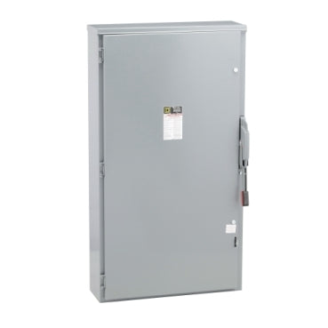 The Square D™ by Schneider Electric brand Heavy Duty Safety Switch is designed to be tough, reliable and provide exceptional performance in the most grueling conditions. F Series safety switches provide significantly higher levels of mechanical endurance than NEMA KS-1 or UL98 standards require. All heavy duty safety switches feature a quick-make, quick-break operating mechanism, a dual cover interlock and a color-coded indicator handle. This Single Throw Safety Switch has a rated current of 400A and is UL listed with a NEMA 1 rating of protection. This 3-pole switch has operational voltage ratings of 600VAC/DC. The enclosure is made of steel and has no neutral installed. This non-fusible disconnect has a short circuit current rating of 200kA. This safety switch is surface mounted. This switch comes with an 18 months warranty.Specifications
