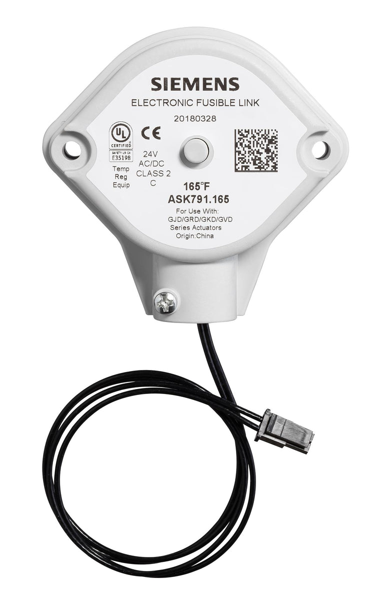 The Electronic Fusible Link (EFL) is a heat responsive device used with the Siemens OpenAir™ UL listed fire and smoke control damper actuators. Upon exceeding the temperature limits of the EFL model ordered (212 ̊ F) and installed, the EFL cuts power to the electronic damper actuator and the actuator's spring return mechanism closes the damper.
