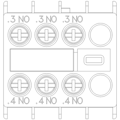Aux.switch block,front,3NO, curr.path 1NO, 1NO, 1NO, f. cont. relays a. motor cont., sz s00 and s0, screw terminal .3 / .4, .3 / .4, .3 / .4