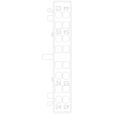 Lateral aux.switch block,side, 2NO, curr.path 1NO, 1NO, for motor contactors, sz s00, spring-loaded terminal r 23/24, 33/34 l 43/44, 53/54