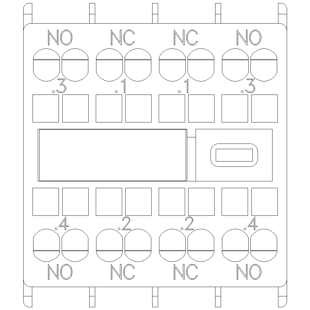 Auxiliary switch on the front, 2 NO + 2 NC Current path 1 NO, 1 NC, 1 NC, 1 NO for 3RH and 3RT spring-type terminal .3/.4, .1/.2, .1/.2, .3/.4