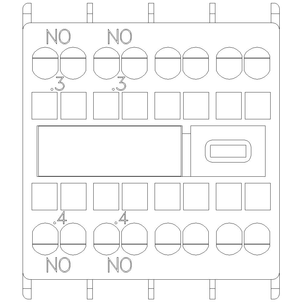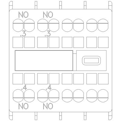 Aux.switch block,front,2NO, curr.path 1NO, 1NO, f. cont. relays a. motor cont., sz s00 and s0, spring-loaded terminal .3 / .4, .3 / .4