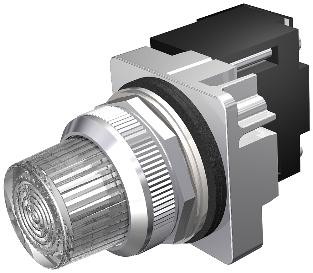 30mm Command/52, Chrome Finish Heavy Duty,Watertight/Oiltight Complete Metal Unit Illuminated Indicator Light Full Voltage type, 120V AC/DC Incandescent Lamp, BA9s Glass Lens, Clear UL Listed, CSA Certified NEMA 1,3,3R,4,4X,12,13 <(>&<)> Automotive Standards