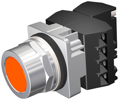 30MM Command/52, Chrome Finish Heavy Duty,Watertight/Oiltight Complete Metal Unit, Round Pushbutton Non-Illuminated Flush Cap Plastic, Orange 2 Position Momentary With 3NO-3NC Contacts Heavy Duty Contacts Rated A600/P600 UL Listed, CSA Certified NEMA 1,3,3R,4,4X,12,13