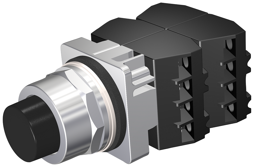30MM Command/52, Chrome Finish Heavy Duty,Watertight/Oiltight Complete Metal Unit, Round Pushbutton Non-Illuminated Extended Cap Plastic, Black 2 Position Momentary With 4NO-4NC Contacts Heavy Duty Contacts Rated A600/P600 UL Listed, CSA Certified NEMA 1,3,3R,4,4X,12,13