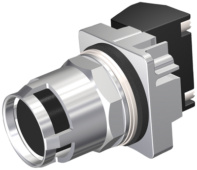 30MM Command/52, Chrome Finish Heavy Duty,Watertight/Oiltight Complete Metal Unit, Round Pushbutton Non-Illuminated Extended Cap Plastic, Black 2 Position Momentary With 1 NO Contact Heavy Duty Contacts Rated A600/P600 UL Listed, CSA Certified NEMA 1,3,3R,4,4X,12,13