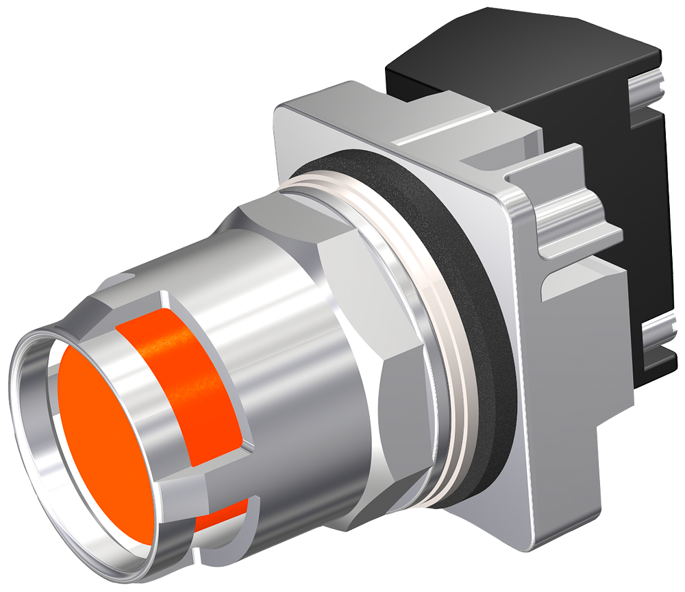 30MM Command/52, Chrome Finish Heavy Duty,Watertight/Oiltight Complete Metal Unit, Round Pushbutton Non-Illuminated Extended Cap Plastic, Orange 2 Position Momentary With 1NO-1NC Contact Heavy Duty Contacts Rated A600/P600 UL Listed, CSA Certified NEMA 1,3,3R,4,4X,12,13