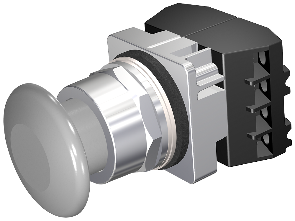 30MM Command/52, Chrome Finish Heavy Duty,Watertight/Oiltight Complete Metal Unit Pushbutton Non-Illuminated Mushroom Head Cap, Ø 1 3/4 (44.5 mm) Plastic, Gray 2 Position Momentary 2NC Heavy Duty Contacts Rated A600/P600 UL Listed, CSA Certified NEMA 1,3,3R,4,12,13
