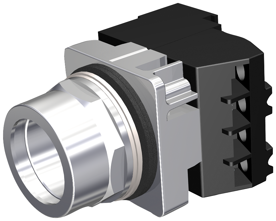 30mm command/52, chrome finish heavy duty,watertight/oiltight complete metal unit ptt / illuminated pushbutton transformer type, 120V AC incandescent lamp less lens cap 2 position momentary with 1 n.o. - 1 n.c. heavy duty contacts, a600/p600 ul list