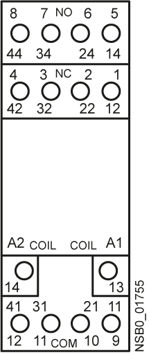Plug-in base for mounting on din rail for 2 changeover contacts