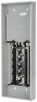 SIEMENS LOW VOLTAGE PL SERIES LOAD CENTER. MAIN LUG WITH 30 1-INCH SPACES ALLOWING MAX 54 CIRCUITS. 3-PHASE 4-WIRE SYSTEM RATED 120/240V OR 120/208V (200A) 100KA INTERRUPT. SPECIAL FEATURES: COPPER BUS, INTERCHANGEABLE MAIN, GRAY TRIM, NEMA TYPE1 ENCLOSURE FOR INDOOR USE.