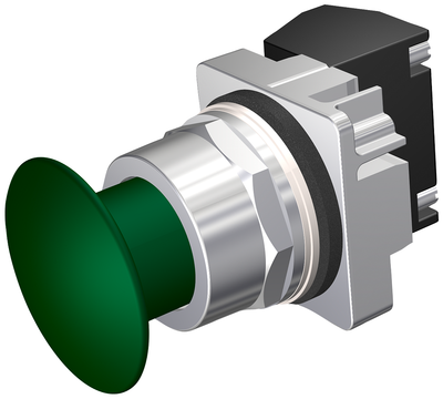 30MM Command/52, Chrome Finish Heavy Duty,Watertight/Oiltight Complete Metal Unit Pushbutton Non-Illuminated Mushroom Head Cap, Ø 1.73 (44 mm) Metal, Green Anodized 2 Position Momentary 1NO-1NC Heavy Duty Contacts Rated A600/P600 UL Listed, CSA Certified NEMA 1,3,3R,4,12,13
