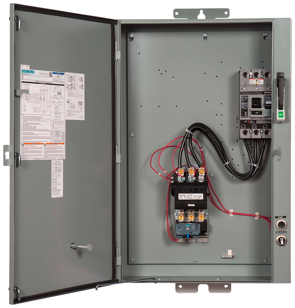 Pump control panel, Size 4, H2 Solid-state overload relay, OLR amp range 50-200A, 240V 50Hz / 277V 60Hz coil, Standard type contactor, 150A circuit breaker, HOA Sel Sw. <(><<)>(><(>&<)><(><<)>)> Start P.B., Enclosure NEMA type 3/3R, Weather proof outdoor use