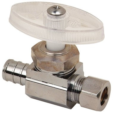 With its 1/2" x 3/8" configuration, the BRPX14X-C valve is ideal for water supply lines, fixtures, and appliances. Its barb PEXxCompression end connections allow for quick and easy installation, without the need for soldering or special tools.