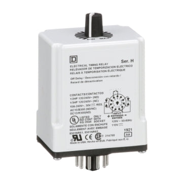 9050JCK22V20 | Plug In Timer, off delay, 0.3 to 30 seconds, 120 VAC 110 VDC | Square D by Schneider Electric