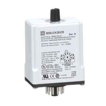 9050JCK26V20 | Plug In Timer, off delay, 0.1 to 10 minutes, 10 A at 240 VAC, 120 VAC/110 VDC | Square D by Schneider Electric