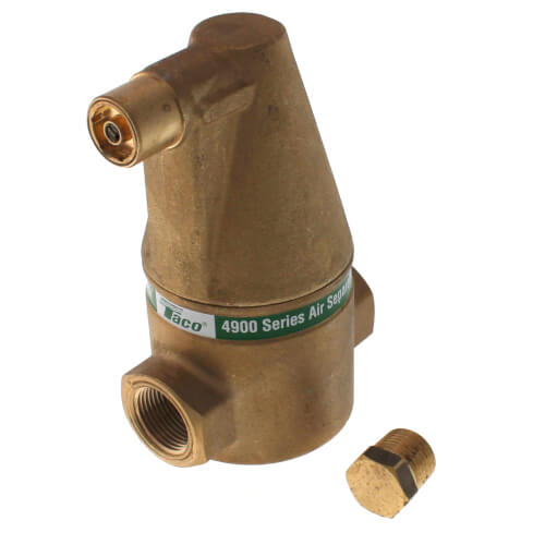 The Taco 4900 Series ® Bronze Air Separators are designed for the complete elimination of air from closed loop heating and cooling systems up to a maximum temperature of 240°F and a maximum pressure of 150 PSI. The principle on which the 4900 Series ® Bronze Air Separators is based is a patented and proven method of removing gases from water: the PALL ring process. The ultimate micro-bubble separation of the PALL Ring Process eliminates