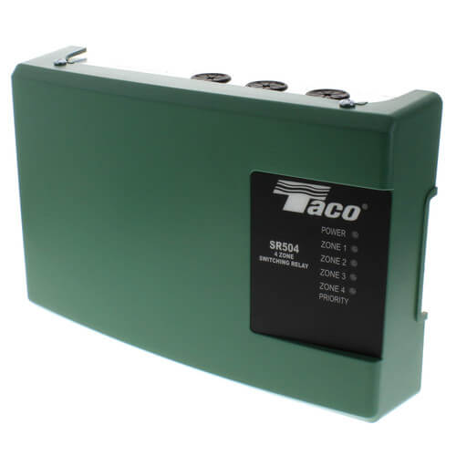 The Taco SR504-4 Switching Relay is the best choice for all your zoning needs, with advanced PowerPort Cards, external diagnostic lights, and contractor friendly PC board layouts. Combined with the time proven reliability of the 00 family of circulators and thermostats, total system integrating is achieved. External indicator lights provide instant diagnostic feedback, making a snap of service calls or new installation start-ups.