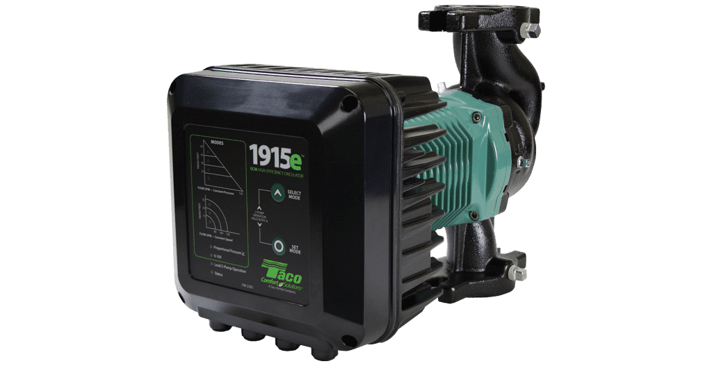 The 1915e® ECM High-Efficiency Circulators is a self-sensing, close coupled, mechanically sealed in-line pump that exceeds industry and efficiency standards with an advanced hydraulic design. It features a high-efficiency volute, ECM motor and integrated frequency drive. Simple yet versatile control options include constant pressure, constant speed, proportional pressure, 0-10Vdc and parallel pump alternation. These standard features combined with the intuitive user interface allow for quick start-ups achieving optimum system efficiency and maximum comfort. The 1915e® ECM High-Efficiency Circulators is available in Cast Iron for closed loop hydronic heating and cooling systems or Stainless Steel, NSF Commercial Hot Certified for DHW applications.