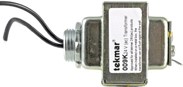 The Transformer 009 is a 40 VA, 24 V (ac) transformer for use with products that require an external transformer. It includes an in-line fuse for circuit protection.