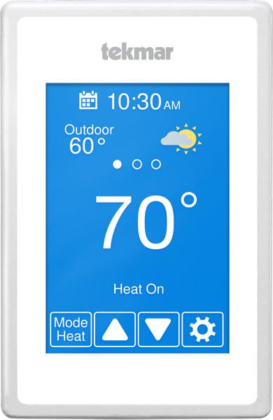 The WiFi Thermostat 562 operates a two stage heating, one stage cooling system and a fan. When connected to the Internet, the Watts® Home mobile app allows the thermostat to be controlled remotely. A 7-day, 4-event programmable schedule is available and the early start feature automatically learns to heat up the room by the scheduled time. An Away mode is quickly and easily accessed to provide energy savings when the space is unoccupied. The thermostat supports radiant floor heating and optional floor sensors can be installed to enhance comfort and protect floor coverings.