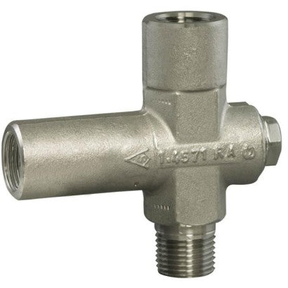 The overpressure protector consists of a spring loaded piston valve. Under normal pressure conditions the spring holds the valve open. When the system pressure exceeds the set pressure, the force exerted by the spring is overcome and the valve closes. The valve will remain closed until the system pressure drops approx. 25 % below the closing pressure, where-upon the force of the spring will open the valve.